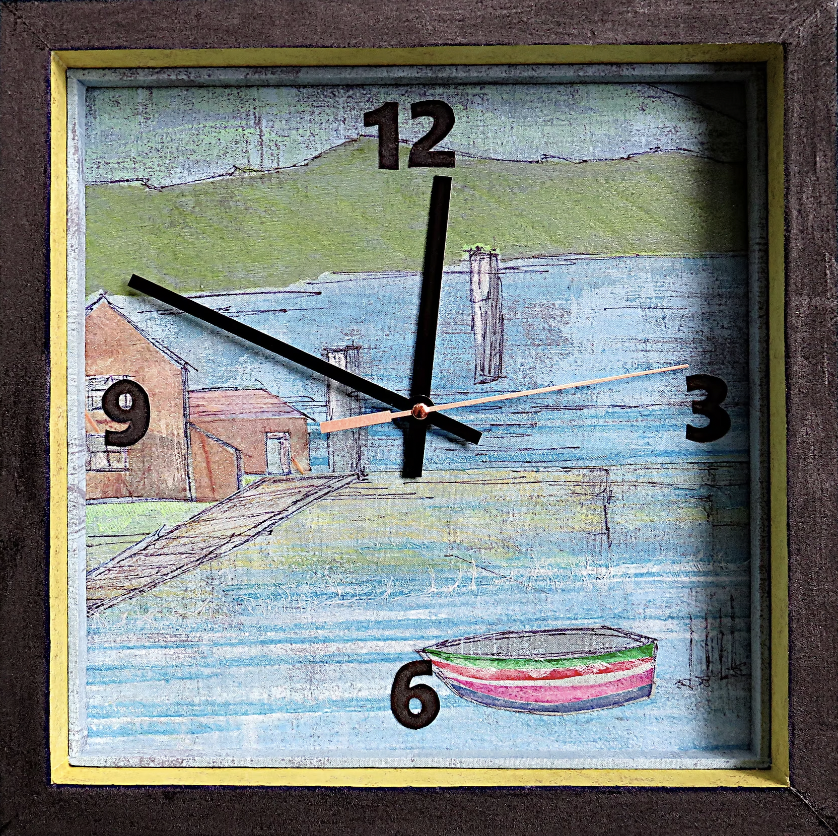Kate Bridger - fabric art - The Dinghy DockTextile Size: 12.75" x 12.75" (one AA battery required)About Kate Bridger My foray into Fabric Art began in the early 1980s when...